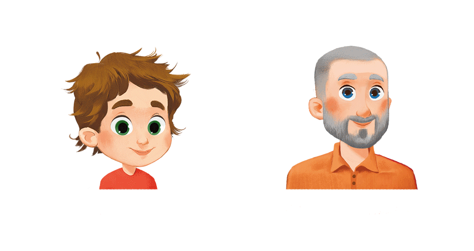 Personaliziraj lik otroka in očeta – izberi barvo oči, barvo las, frizuro… nosita očala? V le nekaj klikih bosta videti čisto prava!