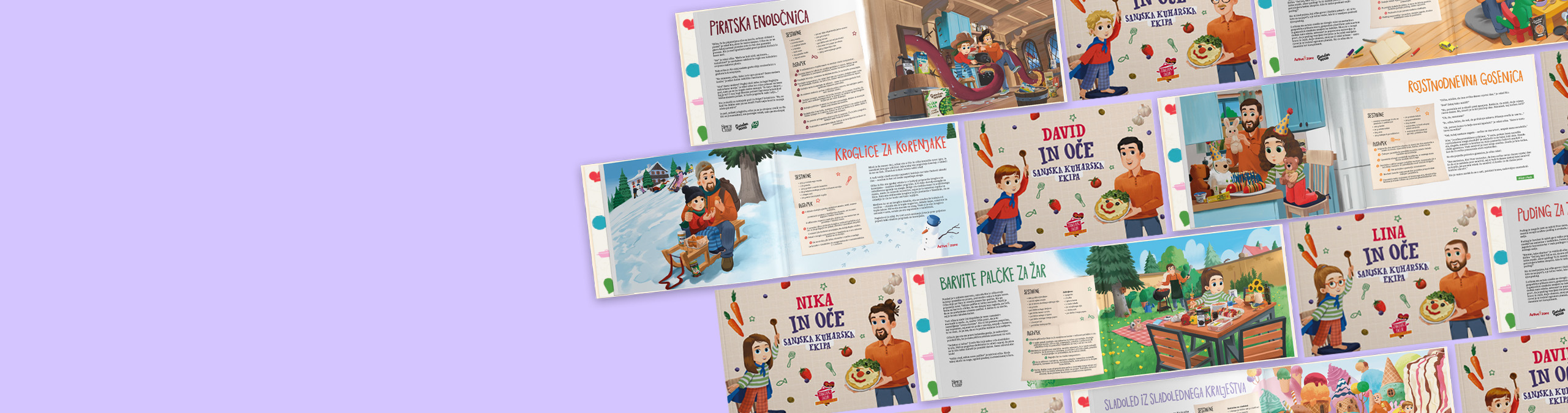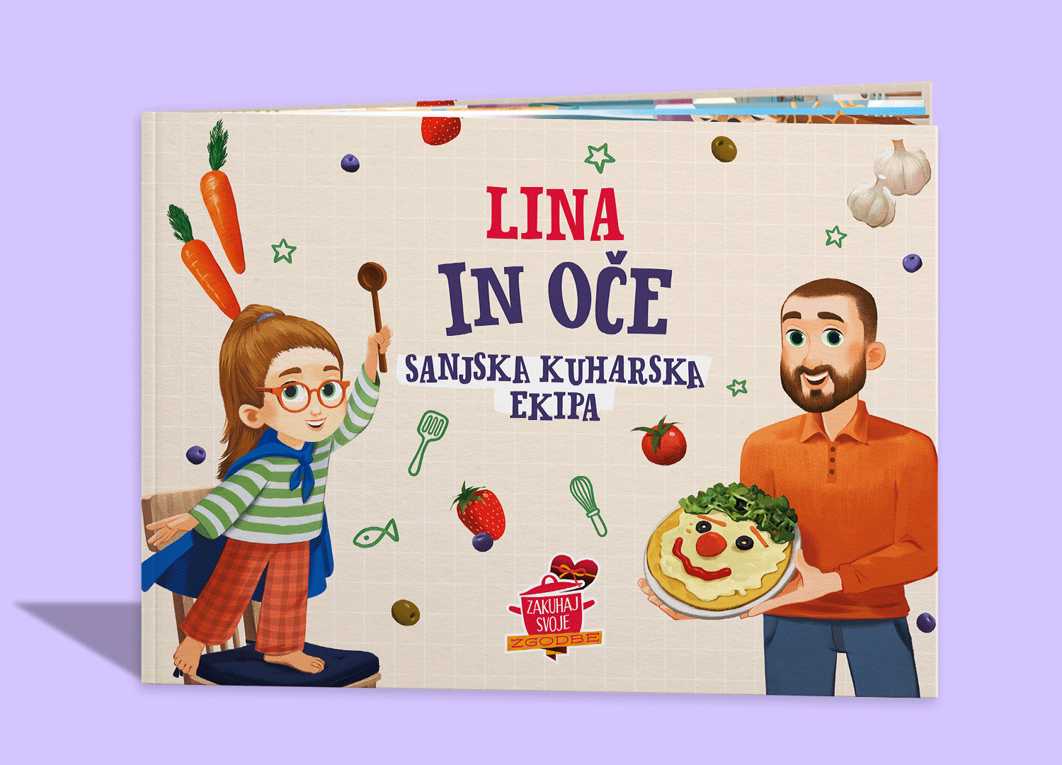 Zabavna in personalizirana knjiga kuharskih zgodb vsebuje 14 domiselnih zgodb in preprostih receptov, ki vsako kuhanje spremenijo v skupno avanturo očeta in otroka! Ob vsakem receptu je zgodba polna smeha, domišljije in priložnosti za povezovanje – skozi vse leto. Personaliziraj like in ustvari knjigo, v kateri sta ti in tvoj otrok glavna junaka! Recepti in zgodbe v knjigi kuharskih zgodb za očeta in otroka se razlikujejo od različice za mamo in otroka.