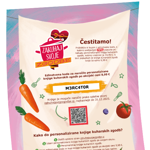 Nalepke zbiraš do 10. 12., svojo knjigo kuharskih zgodb pa naroči do 31.12.2025 oziroma do razprodaje zalog.